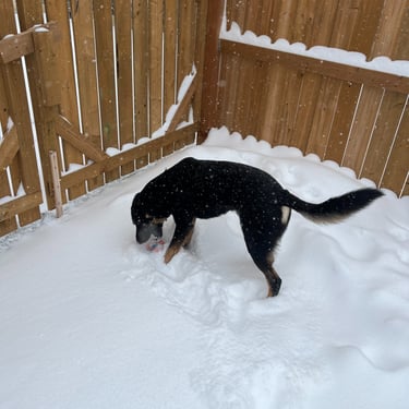 What a great weekend to get outside! Kevin and Bella enjoyed playing fetch in the snow. Most snow we've had in years! The picture above highlights the slopes kevin was skiing, reminds me of some of my Angus friends! While we were inside getting warm, we made some fabulous, gluten full muffins! mmmmmm.